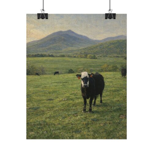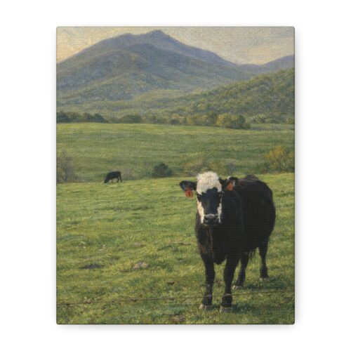 Sharp Top Pasture Print – Vintage Mountain Cow Landscape – Matte Canvas