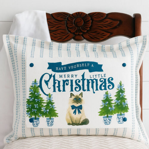 Blue Toile Kitty Snap Graphic – Interchangeable Pillow Décor