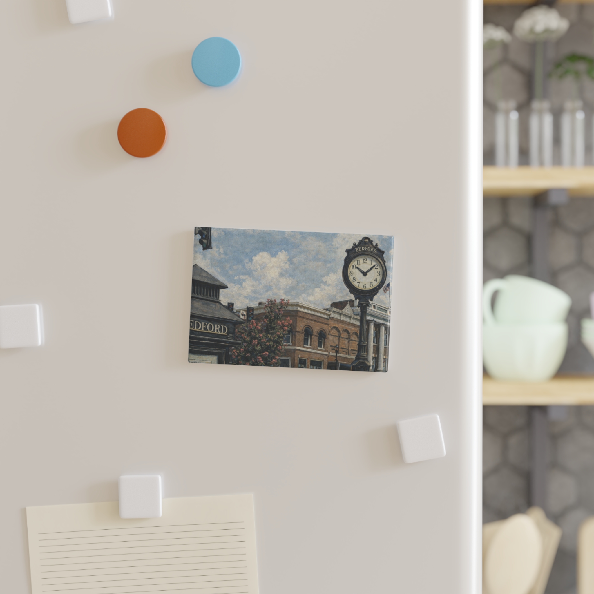Add a touch of Bedford’s character to any metal surface with this magnet! These rectangle magnets feature a metal shell front with a magnetic backing. On the front you’ll find a clear mylar/UV cover that protects against fading and scratches.