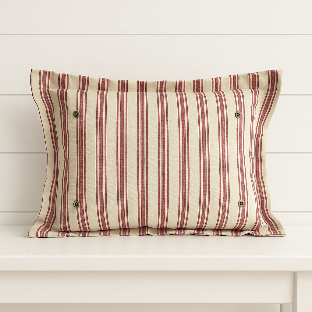 Handmade Red & Cream Striped Snap-It Pillow – Interchangeable Seasonal Décor